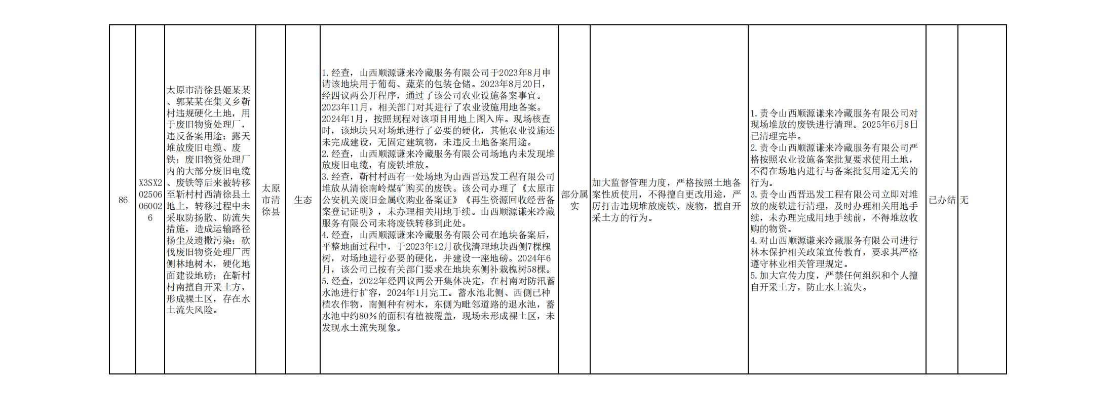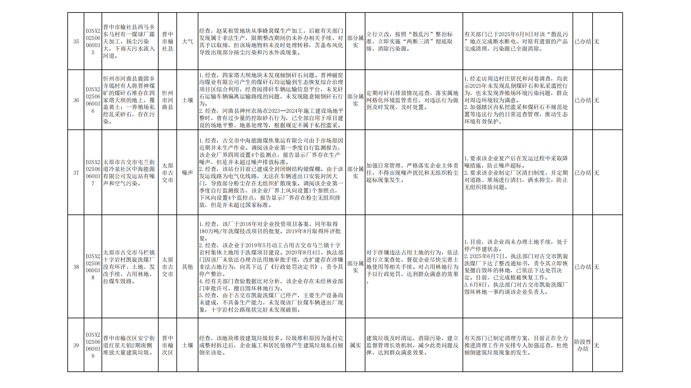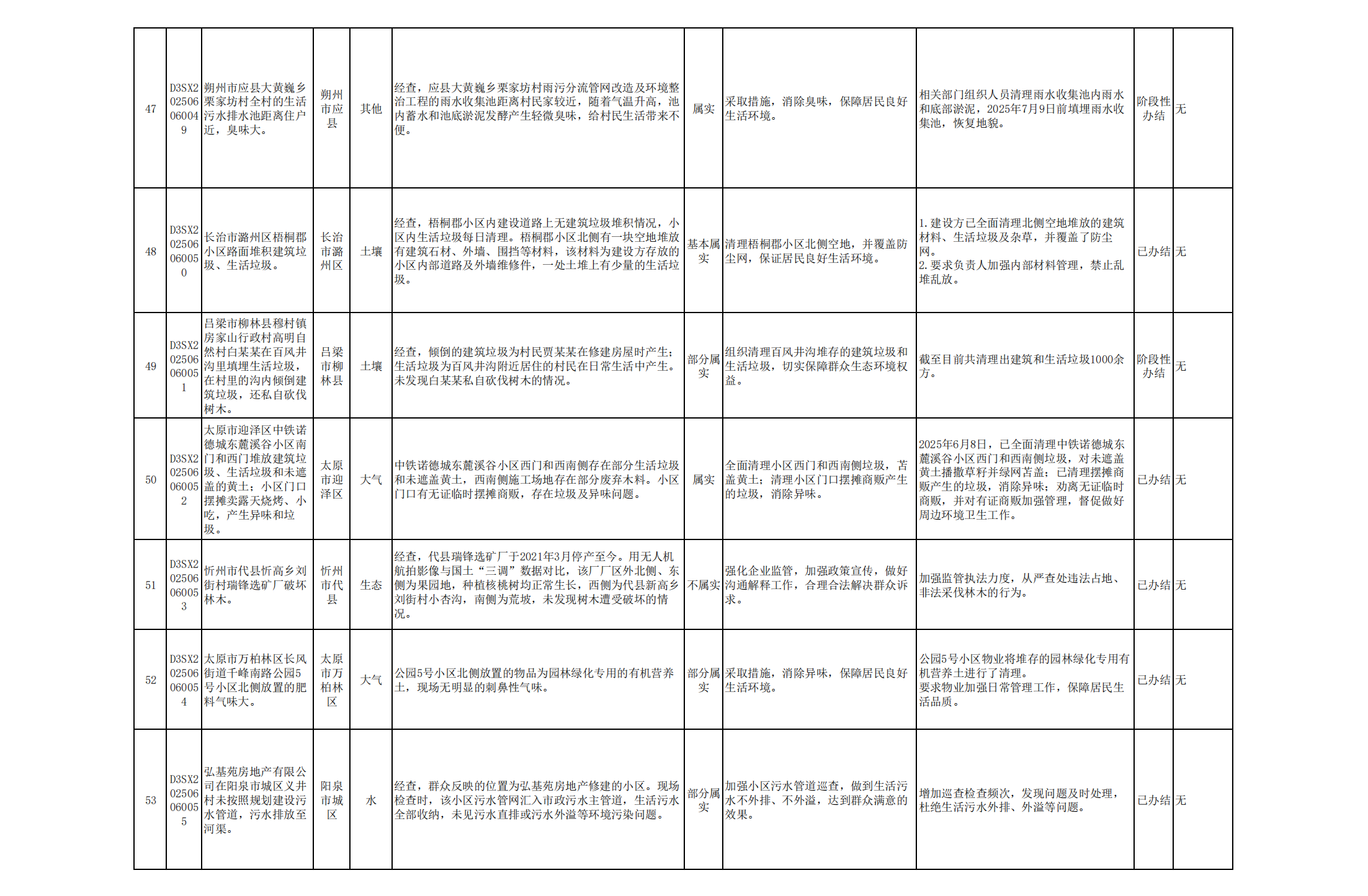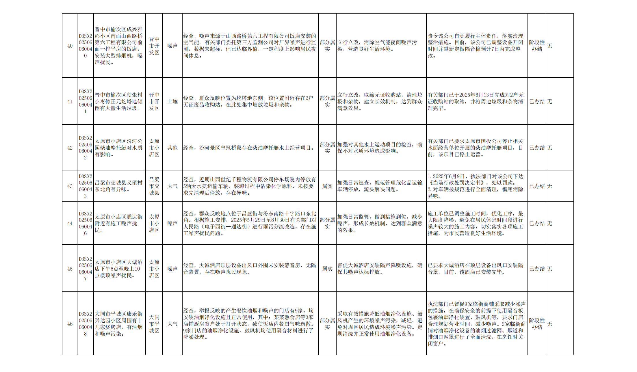 截至2025年6月15日,中央第一生态环境保护督察组向我省交办的第十批群众信访举报件86件,各责任单位均按要求上报调查处理情况。其中,已办结63件,阶段性办结23件,按照有关规定予以公开。